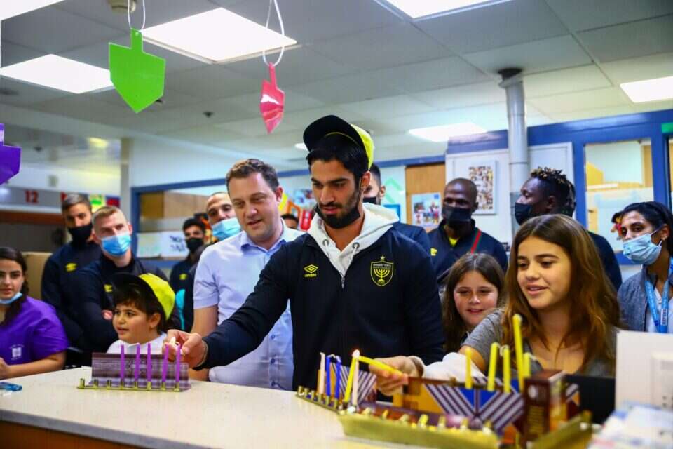 אחרי אימון הבוקר, והפרידה מהמאמן, ארווין קומאן, הגיעו היום (חמישי) שחקני בית"ר ירושלים אל בית החולים הדסה עין כרם, על מנת להדליק נרות חנוכה ולחלק מתנות לילדים המאושפזים.
