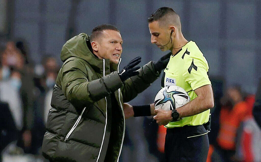 השופט ריינשרייבר החליט להרחיק את מגן מכבי חיפה שדחף וקילל את עוזר מאמן הפועל ב"ש במהלך ההפסקה • מאיר טוען כי בנדו הוא זה שקילל אותו • ברק בכר תקף את השופט: "הרסתם ברגע משחק עונה"
