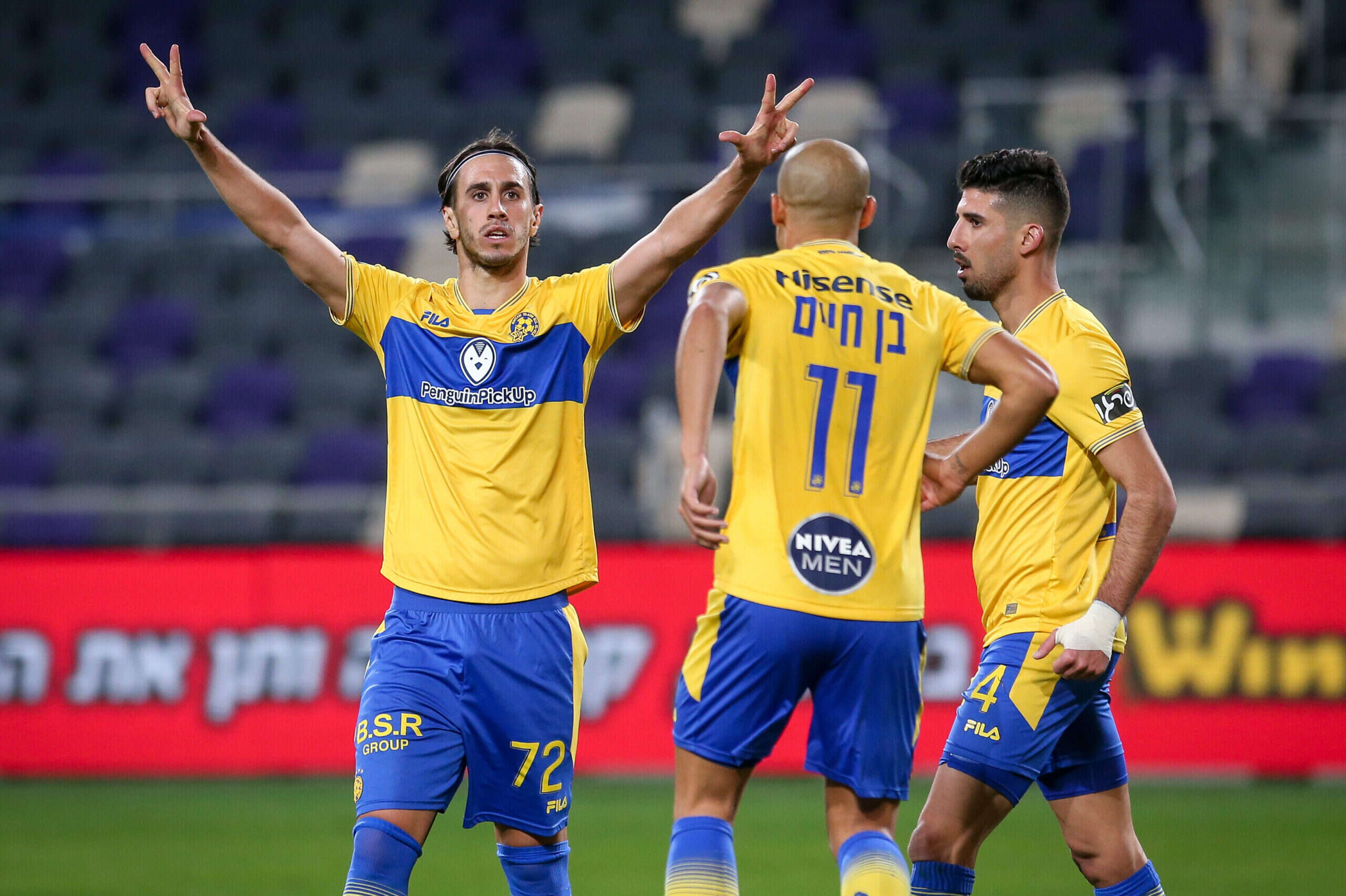 עדן קארצב חוגג מול מכבי פ"ת // צילום: אלן שיבר
