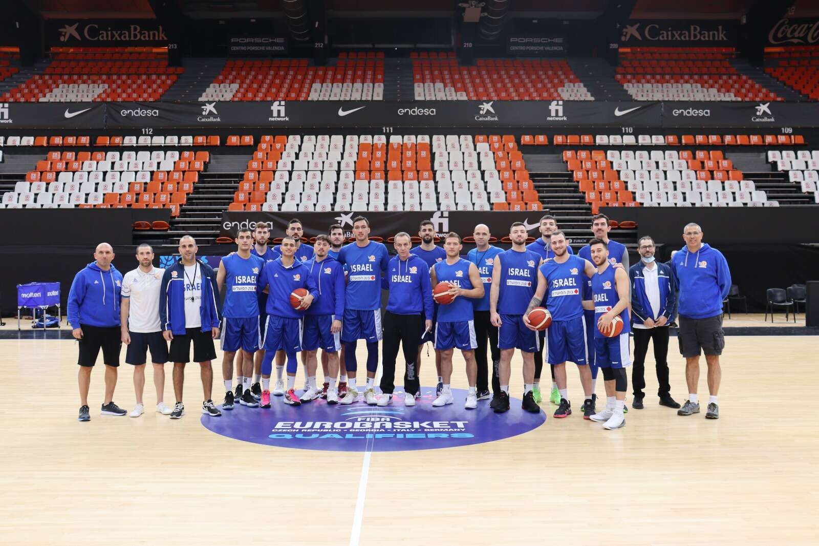 צילום: אתר איגוד הכדורסל // הנבחרת על הפרקט בוולנסיה