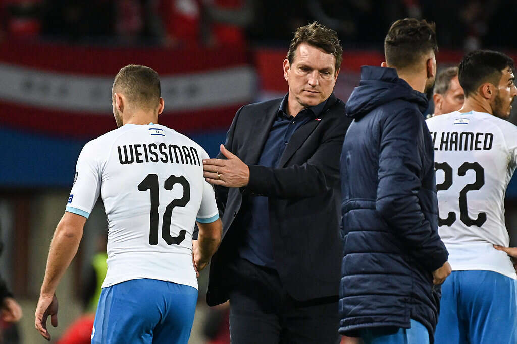 צילום: אי.פי.אי // הרצוג ווייסמן. מאמן הנבחרת צפה בגול שלו מקרוב
