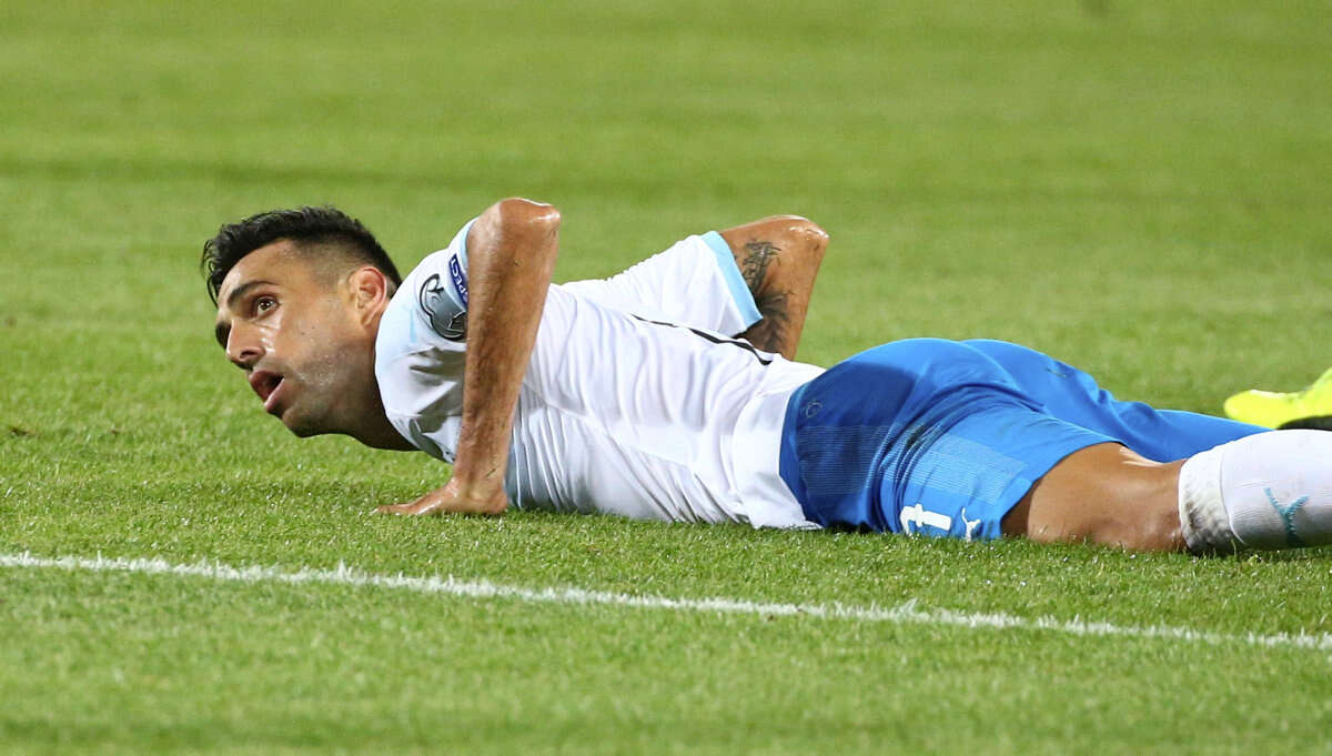 אלי דסה מתקשה לעכל את הצלילה של נבחרת ישראל // צילום: אלן שיבר