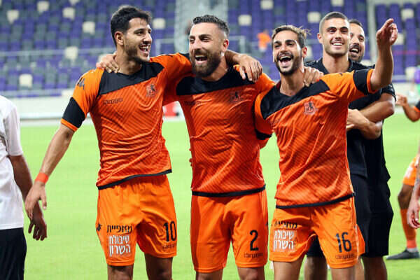 שחקני בני יהודה חוגגים את השוויון של גאדיר, הערב // צילום: אודי ציטיאט