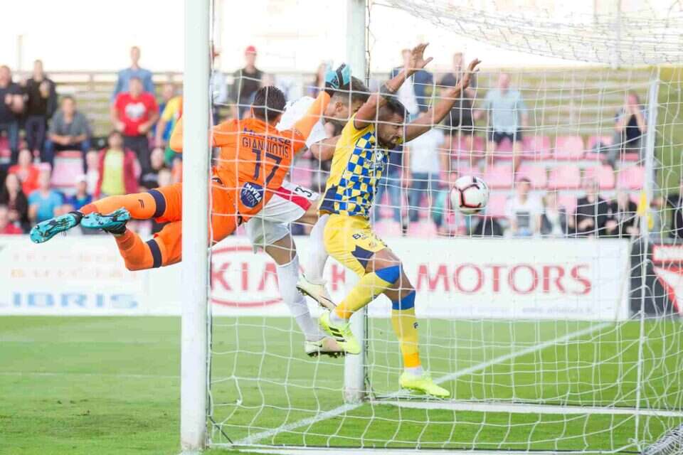 המארחת הגיעה במחצית הראשונה פעמיים לרחבה של יאניוטיס, וכבשה פעמיים. פעם אחת הכדור פגע בסבוריט והטעה את השוער היווני, וגם בשער השני התסריט חזר על עצמו.