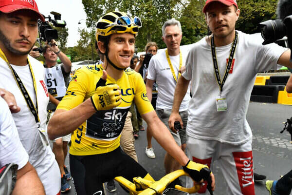 לראשונה בקריירה שלו, הרוכב הוולשי בן ה-32 נכנס לשדרת השאנז אליזה עם החולצה הצהובה כשלצידו כריס פרום, חברו לקבוצת סקיי ומי שזכה 4 פעמים בטור שהסתפק הפעם בליווי והשקת שמפניה עם זוכה הטור החדש.