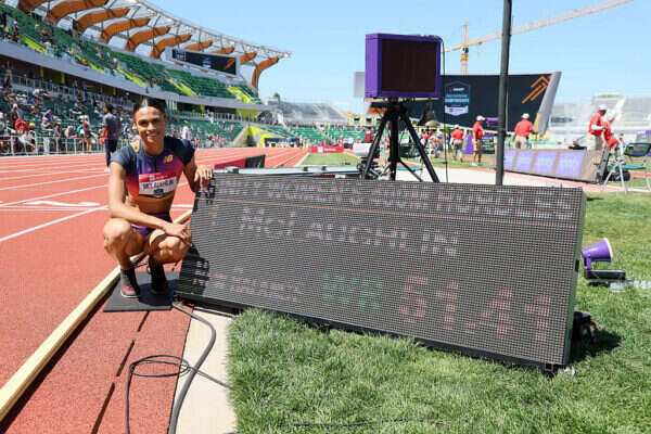 מק'לוכלין בת ה-22, חצתה את קו הסיום ב-51.41 שניות, ובכך שיפרה את שיאה שהושג במשחקים האולימפיים בטוקיו בשנה שעברה בחמש מאיות. היא ההמתינה לזמן הרשמי ואז הרשתה לעצמה לחייך ולהרים אגודלים למעלה.