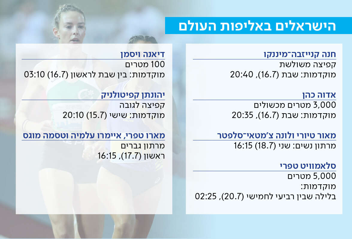 לאחר שלוש שנים של המתנה, שכללו דחייה של שנה בעקבות נגיף הקורונה, ייצא מחר בלילה (שישי), לדרך אירוע האתלטיקה הגדול ביותר, עם פתיחתה של אליפות העולם. לראשונה תתקיים האליפות על אדמת ארה"ב, במדינת אורגון.