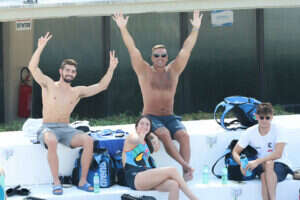 הנבחרת הגיעה לבריכה והתמקמה בפינה משלה, ולאחר שעשו את החימום זינקו למים, כל אחד לפני הדרך שלו, כאשר את מחיאות הכפים קיבל אדם מראענה, שעשה זאת עם סלטה מרהיבה, שהיה יכול לקבל בקלות ציון 10 בהתעמלות.