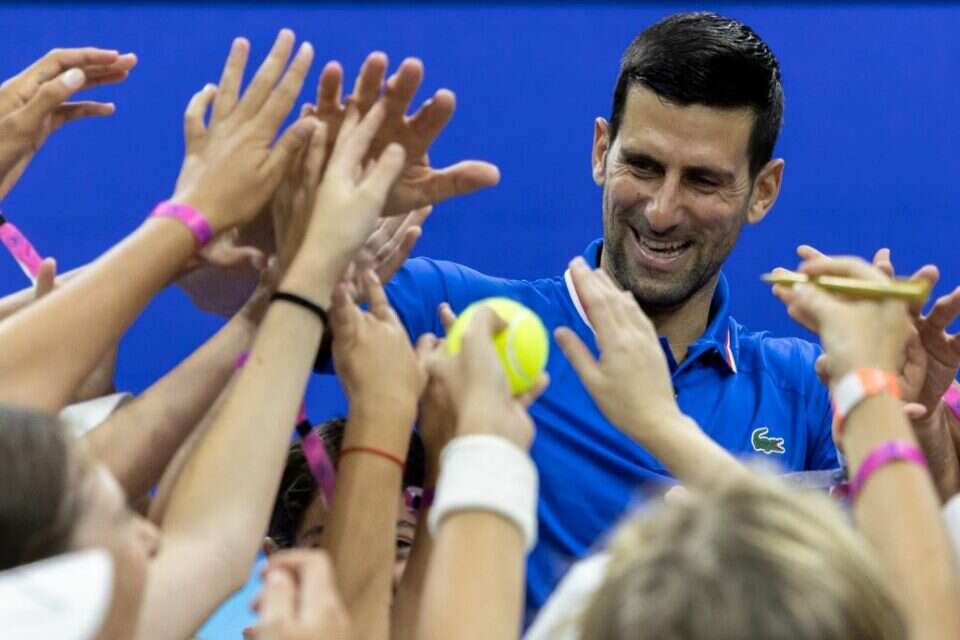 ג'וקוביץ' עם הילדים. פינה זמן | צילום: איגוד הטניס