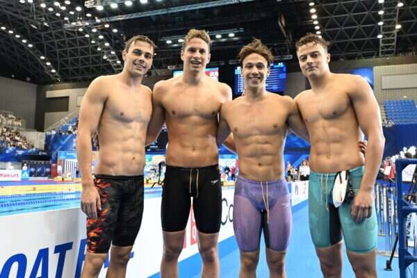 נבחרת השליחים ל-4X100 מטר חופשי, עם תומר פרנקל, דניס לוקטב, רון פולונסקי וגל כהן גרומי, קבעה שיא ישראלי ענק של 3:14.03 דקות, שיפור של 1.32 שניות לשיא הקודם מאליפות העולם בשנה שעברה בהונגריה. הנבחרת בכחול-לבן עלתה בפעם הראשונה בהיסטוריה לגמר אליפות העולם, מהמקום השמיני הכללי.