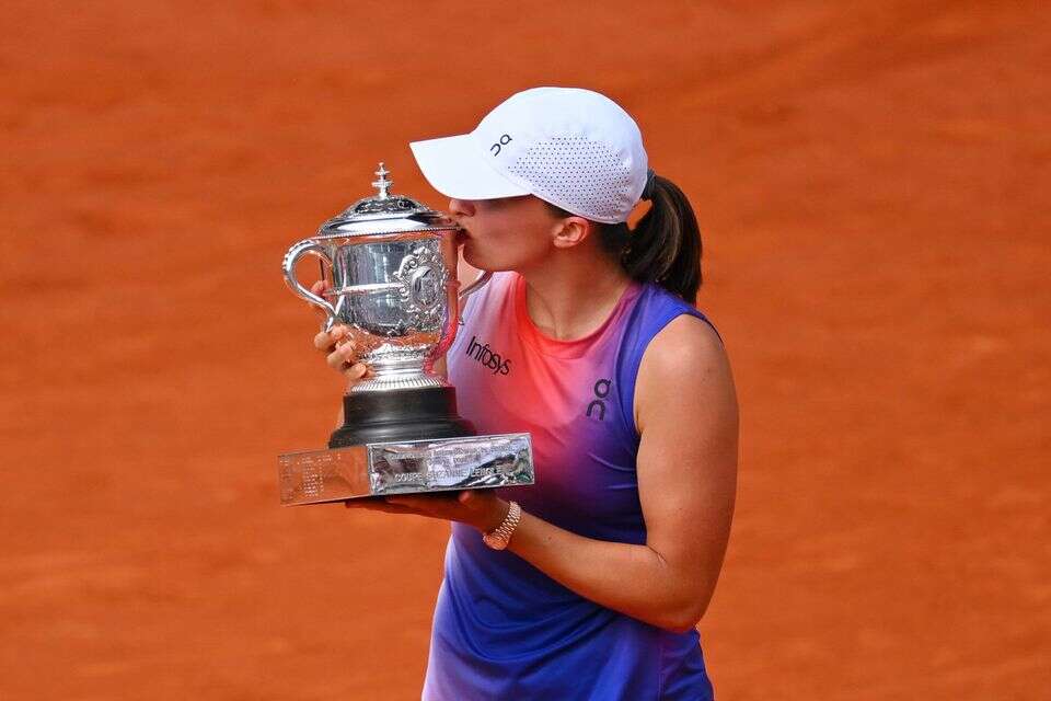 הפולנייה, המדורגת ראשונה בעולם, לא התקשתה להביס 2:6, 1:6 את ג'זמין פאוליני האיטלקייה בדרך לזכייה שלישית ברציפות ברולאן גארוס והרביעית בחמש השנים האחרונות. שוויונטק היא השנייה בעידן הפתוח שזכתה בכמות כזו של תארים בגראנד סלאם פריז בכמות כזו של שנים רק לאחר ג'סטין הנין הבלגית, כאשר היא השלישית בעידן הפתוח לזכות שלוש פעמים ברציפות ברולאן גארוס אחרי מוניקה סלש והנין.