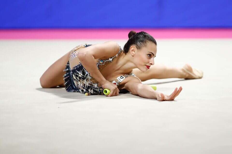 אשרם (הפועל ראשון לציון רמת אליהו) ביצעה תרגיל כדור עליו קיבלה ציון של 28.55 נק׳ שהעניק לה כאמור את המקום הראשון, כאשר במקום השני זכתה דינה אברינה ושלישית - אחותה התאומה ארינה.