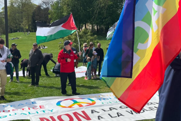 בשעה 15:00 שעון מקומי, החלו לזרום לגני המלך – פארק מרכזי הממוקם בלב העיר לוקסמבורג – מאות מפגינים. רבים מהם נשאו דגלי פלשתין, כרזות עם כיתובים כגון "Stop the Genocide" ו-"Free Palestine".