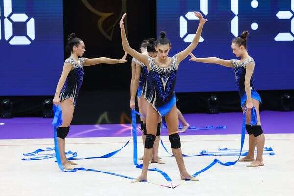 הנבחרת הכוללת את אגם גב, קריסטינה אילון טרנובסקי, ארינה גבוזדצק, מאיה גמליאל, ורברה סלנקוב, ליאן סוכרביץ, עלו תחילה להופיע בתרגיל המשלב כדורים וחישוקים, עליו קיבלו 26.300 נקודות.