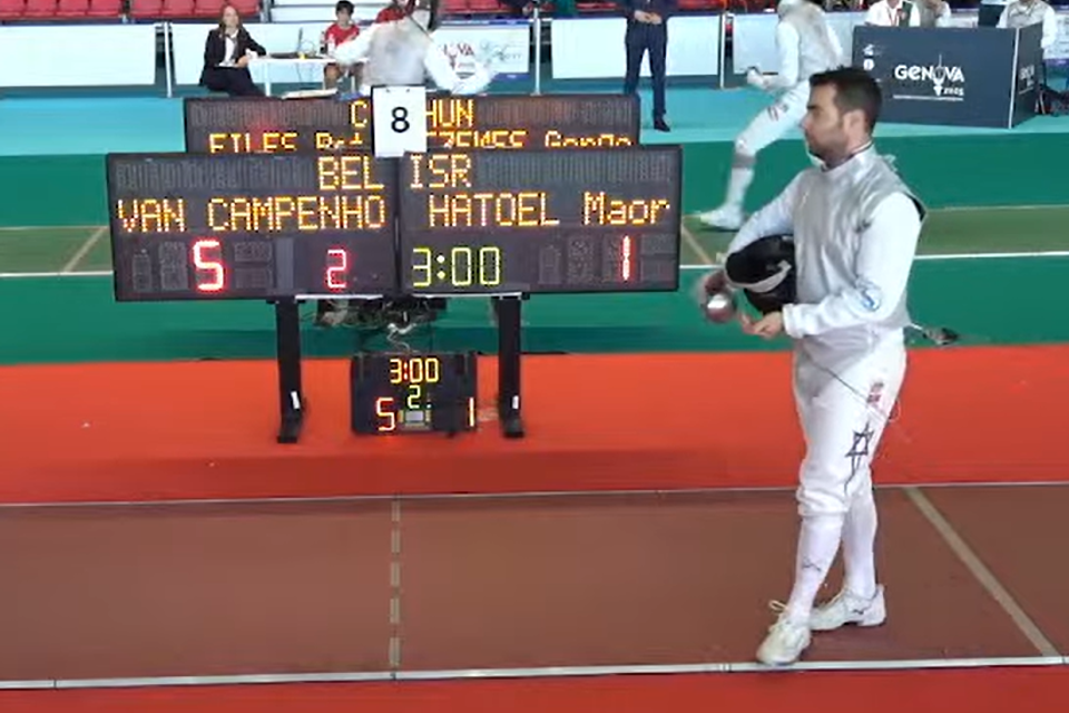 כדי לא להשאיר את הנבחרת בחיסרון מספרי ואף להבטיח השתתפות ישראלית מלאה, קיבל המאמן חטואל החלטה יוצאת דופן: ללבוש שוב את חליפת הסיף, לראשונה מזה יותר משנה, ולעלות בעצמו למשטח התחרות. לצידו התחרו גם ליאם אביב, יהלי דהאן ומארק פרלמן ולמרות ההקרבה, הנבחרת הישראלית הפסידה לבלגיה בתוצאה 45:18.