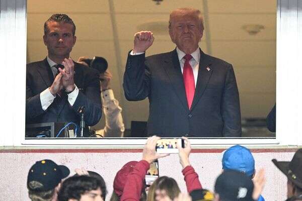 "אני קצת מאחר", אמר טראמפ לכתבים מוקדם יותר, כשירד ממטוס אייר פורס 1 לאחר נחיתה בבסיס אנדרוז, אחרי שהשלים טיסה מעל האצטדיון במהלך המשחק. לאחר מכן נכנס לרכבו המשוריין ונסע לאצטדיון.