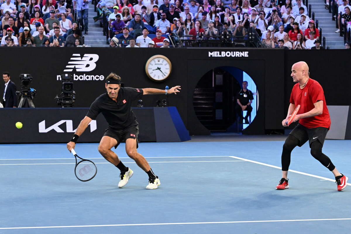 "מלחמת העולמות מספר 1", כך מיתגו באוסטרליה את משחק הזוגות, כאמור משחק ראווה, בו פדרר שיחק לצידו של אנדראה אגאסי מול שני אלופי גרנאד סלאם לשעבר, לייטון יואיט ופטריק ראפטר, שניים שכבר תלו את המחבטים שלהם מזמן.