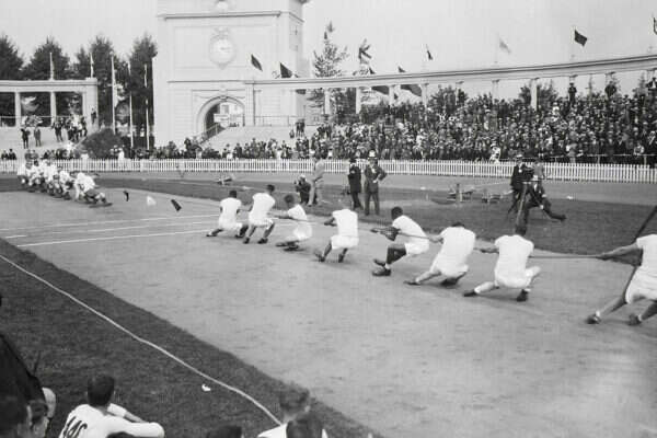 נמשיך עם החבל, אבל הפעם על הקרקע. בין פריז 1900 לאנטוורפן 1920 נערכה תחרות משיכה בחבל. כל מדינה שלחה נבחרת שהורכבה משישה עד שמונה ספורטאים, שעמדה במרחק של 1.83 מ' מיריבתה בניסיון למשוך זו את זו מעבר לקו הסף. נבחרת בריטניה נחשבה תמיד לפייבוריטית - וזכתה פעמיים בזהב. ארה"ב ושבדיה זכו כל אחת במדליית זהב אחת, ומדליה נוספת הוענקה לקבוצה מעורבת של ספורטאים סקנדינבים בפריז 1900, אז השתתפו בתחרות רק שתי נבחרות, זו המעורבת וצרפת.