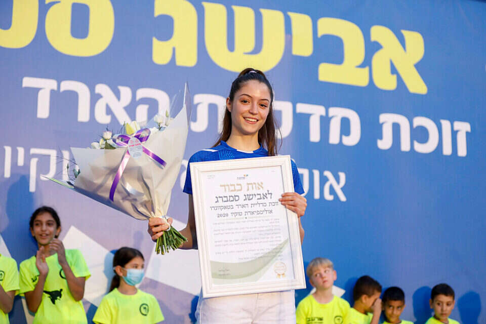 אחרי שנחתה הבוקר (שלישי) בנתב"ג, הגיעה גם תורה של העיר גדרה לערוך טקס קבלת פנים חגיגי למדליסטית הארד של טוקיו 2020, אבישג סמברג.