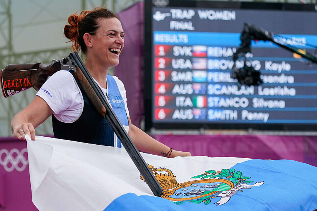 היסטוריה לסן מרינו. המדינה הזעירה בת 34 אלף התושבים הפכה למדינה הקטנה ביותר שקוטפת מדליה אולימפית, זאת לאחר שהקלעית אלסנדרה פרילי - אחת מחמשת הספורטאים היחידים שמייצגים את סן מרינו בטוקיו 2020, הפכה לגיבורה מקומית כאשר סיימה במקום השלישי בתחרות הקליעה של הנשים.