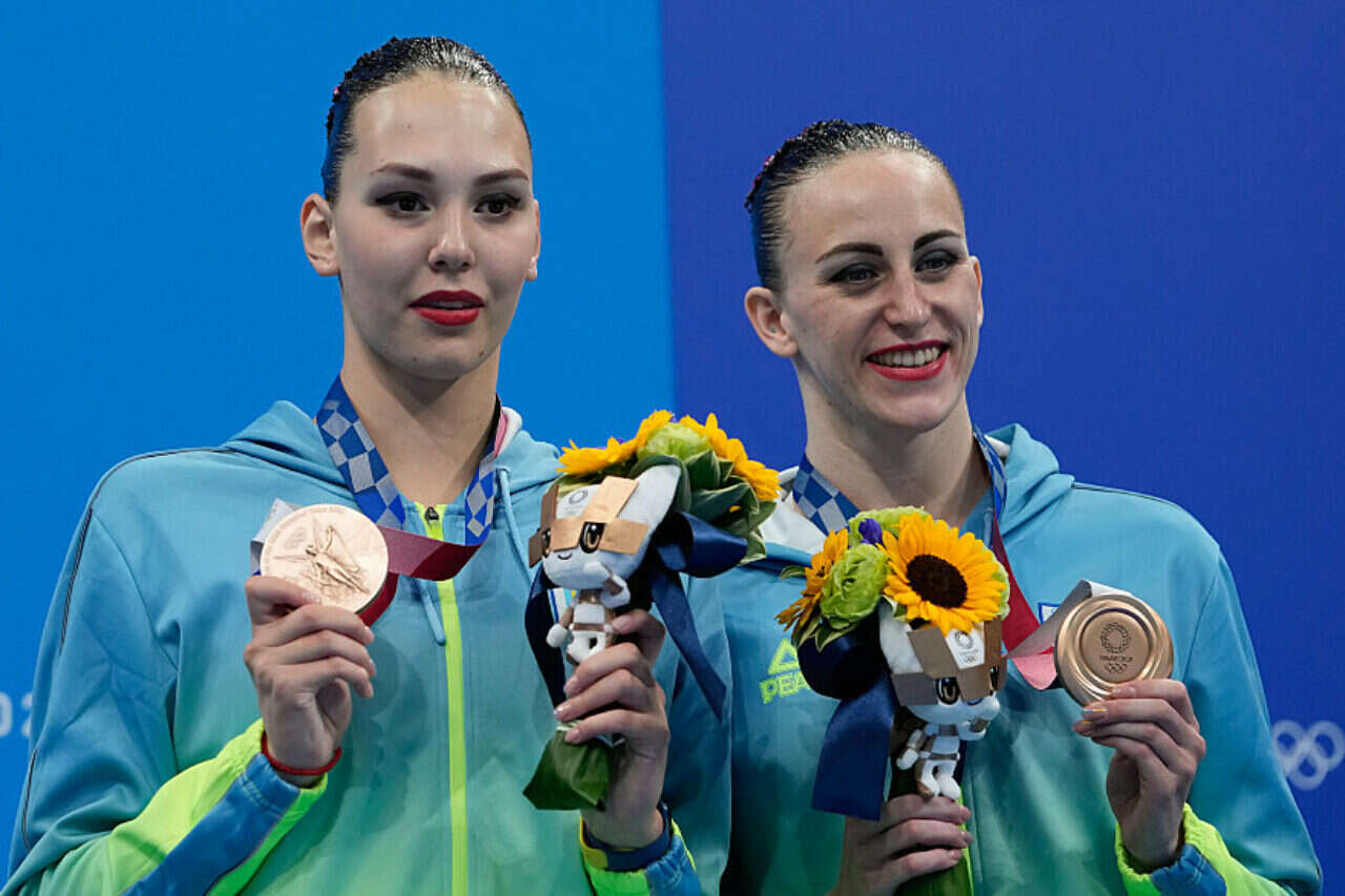 סבטלנה רומשינה וסבטלנה קולסניצ'נקו הרוסיות זכו במדליית הזהב בתרגיל הדואט בשחייה אמנותית, בעוד הצמד האוקראיני מרטה פיידינה ואנסטסיה סבצ'וק הגיע למקום השלישי, אלא שהכרוז בבריכת השחייה בטוקיו התבלבל והכריז גם עליהן כמייצגות את הוועד האולימפי הרוסי.
