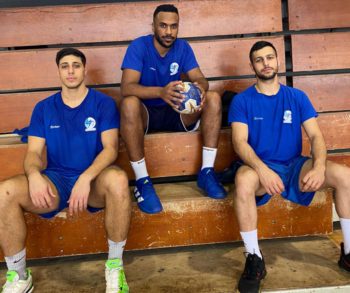 מימין לשמאל: למברוזו, מוסינדי ודיין במחנה האימונים // צילום: איגוד הכדוריד // מימין לשמאל: למברוזו, מוסינדי ודיין במחנה האימונים