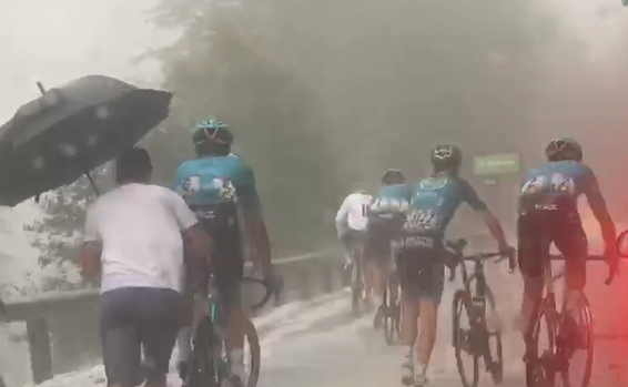 בכדי לא לסכן את הרוכבים תחת מזג האוויר הקשה, חלקם הסתתרו בפינות בצד הכביש, חלקם ירדו מהאופניים ודחפו אותם בידיים וכמה קיבלו סיוע מאנשי הקבוצה בכדי לא להחליק.