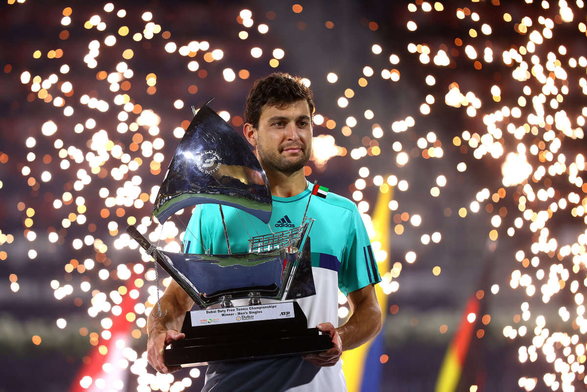 אסלן קאראצב, הטניסאי הרוסי שגדל בישראל, חוגג את הזכייה הראשונה שלו אי פעם בתואר ATP אחרי שניצח אתמול (שבת) בגמר טורניר דובאי את לויד האריס הדרום-אפריקני.