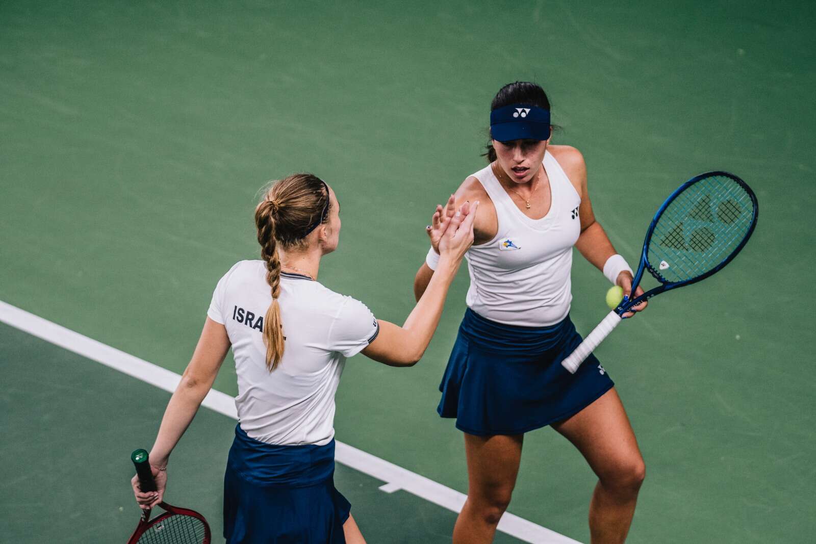 לינה גלושקו (636 בעולם) העלתה את ישראל ל-0:1 במפגש ההיסטורי כשניצחה 1:6 ו-2:6 את שיראז בשרי (1017 בעולם) לאחר 47 דקות של משחק. ולאדה קאטיץ' (642 בעולם) נוצחה 6:4 ו-6:0 במשחק השני על ידי אונס ג'אבור, המדורגת במקום ה-45 בעולם. במשחק הזוגות המכריע נוצחו שביט קמחי ולינה גלושקו 7:6(4) ו-6:1 ע"י אונס ג'אבור ושיראז בשרי.