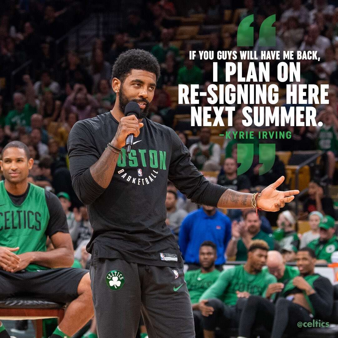 קיירי סיפק את השואו המבוקש במסגרת אירוע מכירת מנויים מיוחד, שהתקיים בגארדן. "אני רוצה ומתכנן לחתום פה גם בסיום העונה הקרובה", הסביר אירווינג לקול תשואות הקהל, "שיתפתי בעניין חלק מהחברים שלי לקבוצה כמו גם חלק ממקבלי ההחלטות בבוסטון".