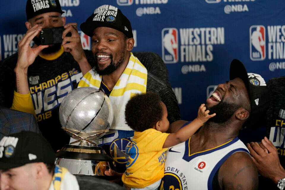 קרי חוגג עם דוראנט. עכשיו לברון מחכה בגמר הגדול // צילום: אי-פי