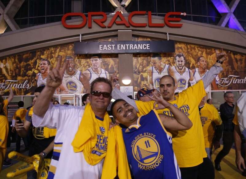 אוהדי גולדן סטייט מחוץ לאורקל ארנה. מוסיפים צבע לליגה // צילום: אי.אף.פי