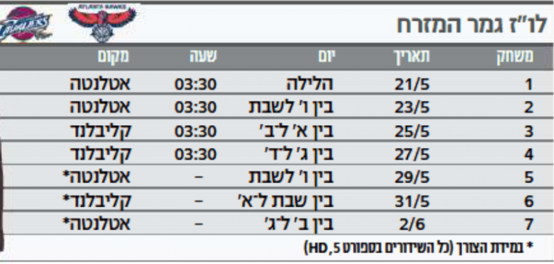 המשחק הלילה וזה שיבואו אחריו יהיה מפגש בין שני סגנונות משחק שונים מאוד, כמעט מנוגדים. למרות המילים היפות של לברון מגמר אשתקד, הקבוצה שלו עדיין תלויה מאוד ב"שחקן הבודד". כמה תלויה? קליבלנד ממוקמת גבוה מעל כולם בפלייאוף הנוכחי עם ממוצע של 16.3 מהלכי בידוד למשחק, הרחק הרחק מאטלנטה עם 6.2 במקום השמיני. רוב הנקודות של ההוקס, לעומת זאת, הם תוצאה של אסיסטים - 67.6 אחוזים - מקום ראשון בפלייאוף והרבה לפני קליבלנד עם 52.5 אחוזים במקום ה־14 בלבד.