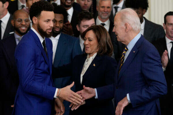 "הצוות של שלושת הגדולים סטף (קרי), דריימונד (גרין) ו... ובכן, אתם מדהימים. אני נשבע באלוהים שזה מה שאתם", אמר ביידן בנאומו." גולדן סטייט ווריורס תמיד רצויים בבית הלבן הזה", המשיך הנשיא. במהלך נאומו הגדיר ביידן את קרי כ"אחד מאנשי הספורט הגדולים של זמננו".