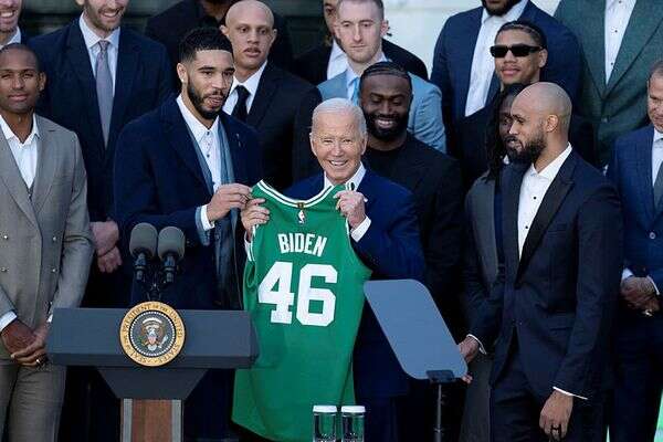 חודשיים לפני שהוא מעביר את השלטון לדונלד טראמפ, הנשיא ג'ו ביידן אירח בפעם האחרונה בתפקיד את האלופה הנוכחית, בוסטון סלטיקס. הירוקים כידוע זכו השנה באליפות ה-18 בתולדותיהם, ובכך שברו את השוויון עם לוס אנג'לס לייקרס בתור הקבוצה המעוטרת ביותר. "הסלטיקס זו לא רק קבוצת כדורסל, זו דרך חיים", ציטט ביידן את רד אאורבך, המאמן האגדי של הסלטיקס בשנות ה-60. הנשיא ה-46 גם קיבל גופיית משחק עם שמו ועם המספר 46: "אני יודע שזה לא היה קל, אבל סיפקתם את אחת העונות הגדולות אי פעם".