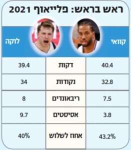 לוס אנג'לס קליפרס - דאלאס (3:3 בסדרה, 22:30). לברון ג'יימס ואנתוני דיוויס כבר מחוץ לפלייאוף, כך גם דמיאן לילארד, והלילה ניפרד מסופרסטאר נוסף כאשר קוואי לאונרד ולוקה דונצ'יץ' ייפגשו לקרב על כל הקופה - המנצח ממשיך לחצי גמר המערב והמפסיד הולך הביתה.
