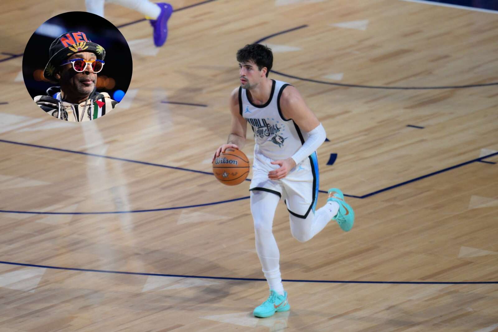 לי, שהגיע גם לאירוע בו התקיימו תחרות השלשות וההטבעות עם עם רצועת תיק בצבעי דגל פלסטין ותיק קטן עם דוגמה שמזכירה כאפייה, דאג לעשות זאת גם במשחק היוקרתי ביותר - מול הפנים של הכוכב הישראלי, שפתח בחמישייה של נבחרת העולם בשני המשחקים.