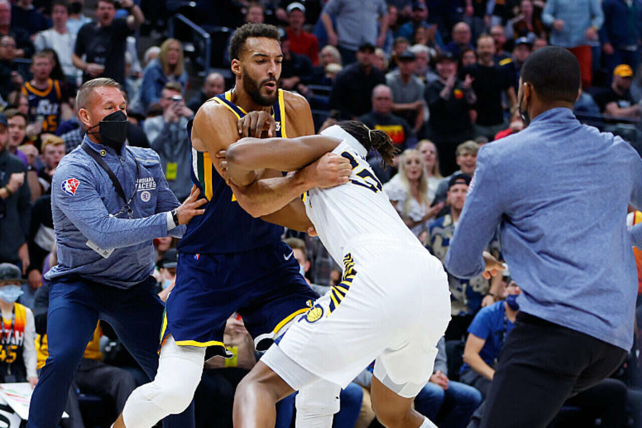 Myles Turner and Rudy Gobert going at it 👀 🍿 pic.twitter.com/qxGGIYbK1G