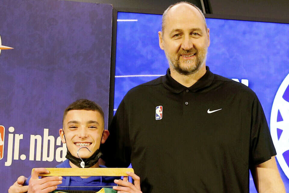 דינו ראדג'ה (54), מגדולי הכדורסלנים האירופאים בכל הזמנים, ביקר השבוע בישראל כאורח של איגוד הכדורסל ושגריר של ה־NBA בהגרלת ליגת הג'וניור לילדים וילדות.