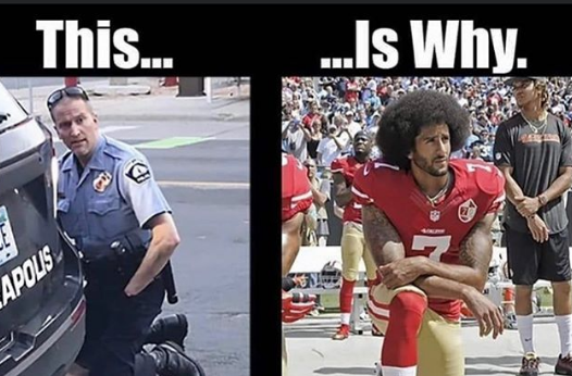 גם בספורט האמריקאי התקשו לעכל את האירוע המזוויע ובשעות האחרונות הופצה תמונתו של קולין קאפרניק, מוביל מחאת הספורטאים השחורים, כורע ברך בזמן ההמנון האמריקאי לצד תמונתו של השוטר, שלמעשה הרג אתמול את האזרח פלויד.