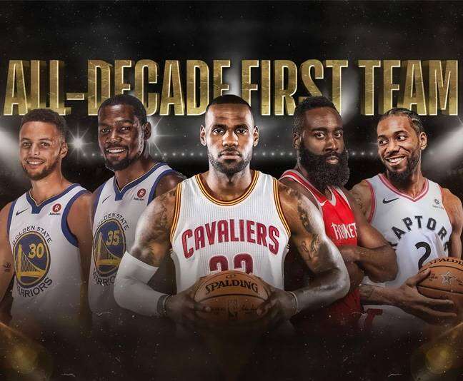 בחמישייה הראשונה קיבלו את הכבוד לברון ג'יימס, סטף קרי וקווין דוראנט, ג'יימס הארדן והאלוף הטרי, קוואי לנארד. ג'יימס ודוראנט הופיעו בכל העשור האחרון במשחקי האולסטאר כאשר ג'יימס הארדן רשם 7 הופעות, בעוד קרי 6 ולנארד 3 בלבד.