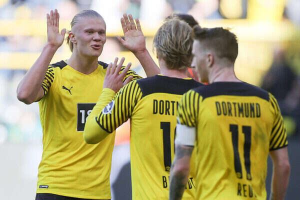 להפסקה ירדה דורטמונד כשהיא מובילה 0:5, כשאת חמשת השערים היא כובשת תוך 14 דקות בלבד. טום רוטה (24) התכבד בראשון, ואליו הצטרפו אקסל ויטסל (26), מנואל אקאנג'י (28), אמרה צ'אן (35) וארלינג הולאנד (38) שגם השלים צמד במחצית השנייה (54). בוטה באקו (81) צימק.