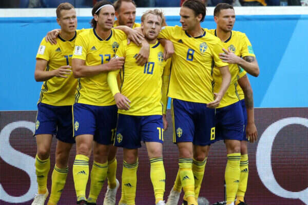 דקה 66 - 0:1 לשבדיה • בעיטה של פורסברג פגעה באקנג'י, שינתה כיוון והכניעה את זומר • השבדים ברבע הגמר