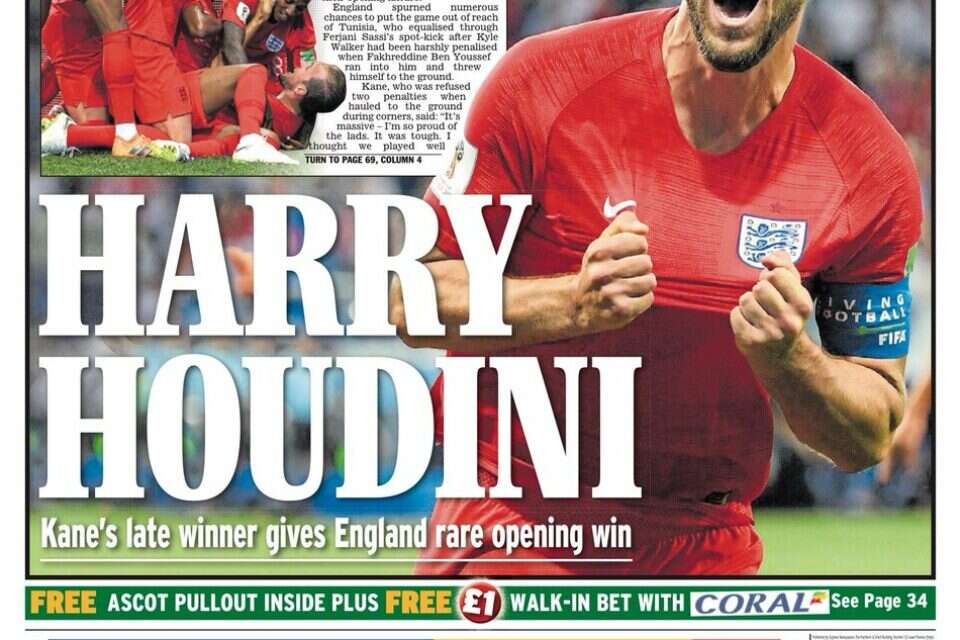 הממלכה בשיגעון. הארי קיין העניק אמש בדקה ה-91 לאנגליה ניצחון דרמטי, 1:2, אחרי שנבחרתו הסתבכה מול טוניסיה. הנבחרת של גארת' סאות'גייט היתה יכולה לעשות את זה הרבה יותר קל, אבל הצליחה להסתבך בגלל שער שוויון של סאסי בדקה ה-35. כעת, אחרי הניצחון הקליל של בלגיה על פנמה, קיין סידר שלוש נקודות חשובות בקרב על המקום הראשון בבית 7.