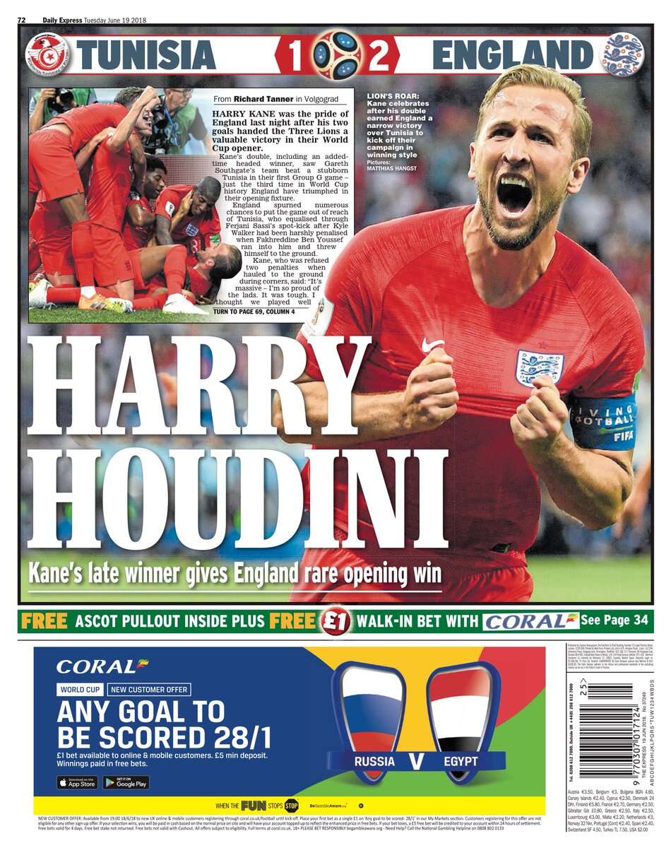 כצפוי, בעיתונות הבריטית לא חסכו במחאות על ההצגה של המציל הלאומי. "קיין הוא המציל האמיתי של אנגליה", נכתב באחד העיתונים. בשער של "המירור" נמרח בשער: "קפטן פנטסטיק, קיין העניק לנו גאווה עצומה". ב"דיילי אקספרס" הלכו צעד קדימה, כשכינו את החלוץ האנגלי: "הארי הודיני".
