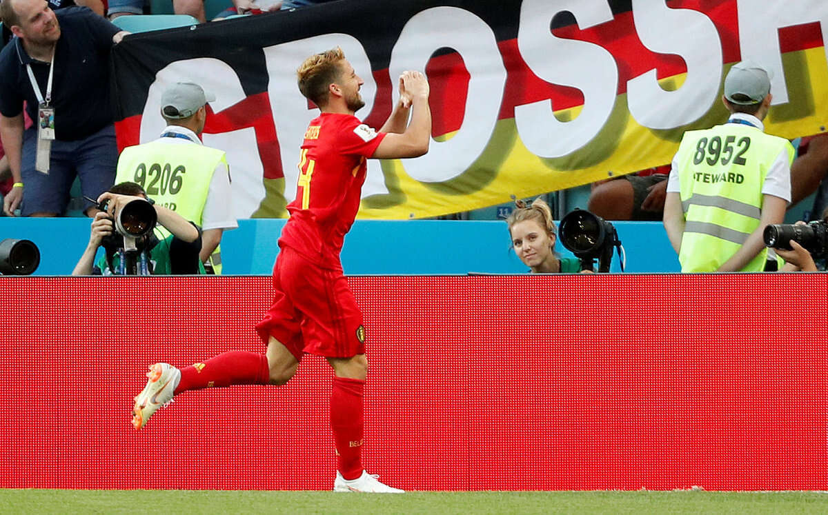 דקה 75: 3:0 בלגיה!!! רומלו לוקאקו חם! חלוצה של מנצ'סטר יונייטד קיבל כדור ברחבה ובנגיעה שם את זה בפנים