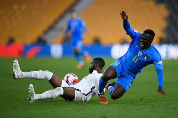 דקה 5: אנגליה פותחת בטירוף. טעות של דונארומה השאירה את אברהם בעמדה נהדרת לכיבוש, אך החלוץ פספס את ההזדמנות.