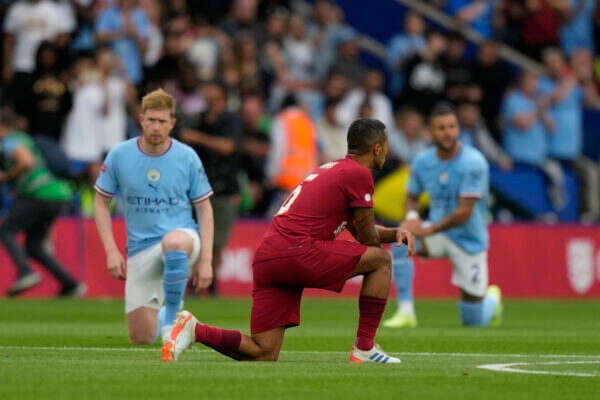 עם החזרה מפגרת הקורונה הראשונה, ביוני 2020, הנהיגו ראשי הפרמייר ליג את כריעת הברך המפורסמת כאקט הזדהות עם המלחמה בגזענות. מאז ועד היום כל משחק נפתח כך, ומיד לאחריו מגיעה שריקת הפתיחה.