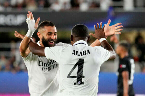 ריאל מדריד פתחה עם אותו הרכב שניצח את ליברפול בגמר הצ'מפיונס לפני חודש, ונראתה טוב יותר מהגרמנים. ויניסיוס ובנזמה הגיעו למצבים טובים אבל נעצרו על ידי טראפ, ובדקה ה-37 כדור קרן הגיע מהראש של קאסמירו לדוד אלאבה - שמקרוב כבש את שער יקר.