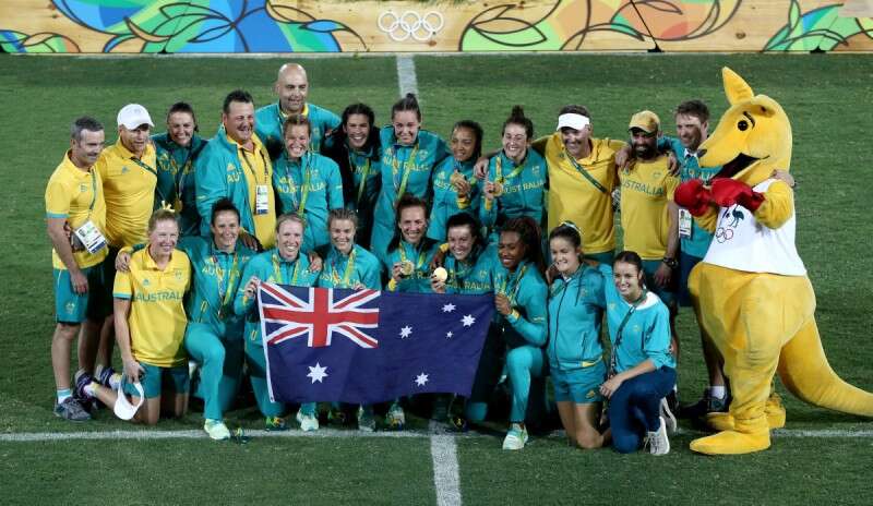 נבחרת הנשים ברוגבי שביעיות של אוסטרליה. זהב היסטורי // צילום: GettyImages
